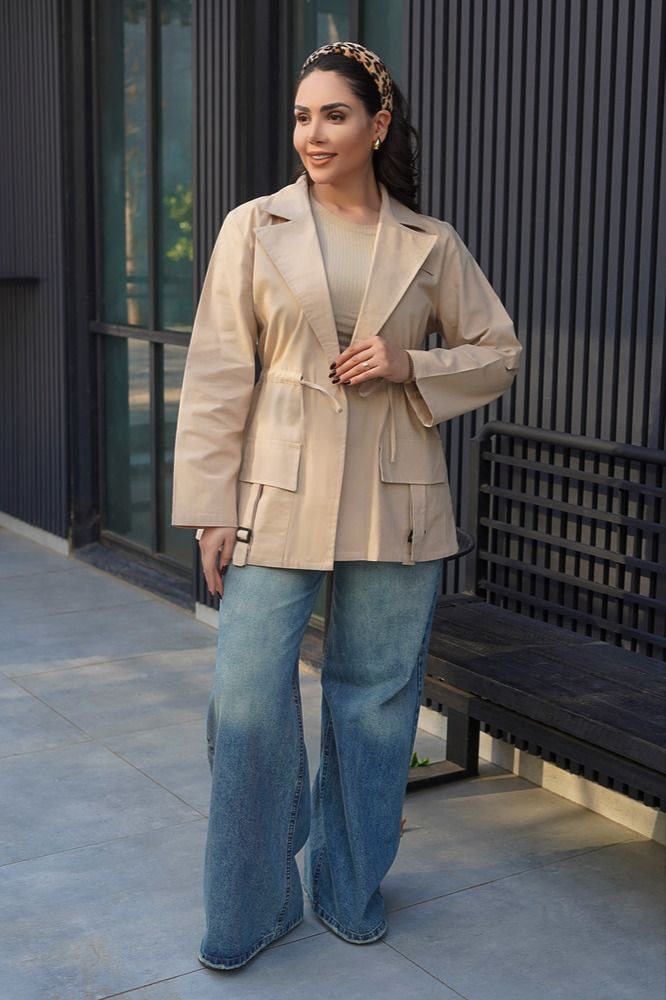 ویژگی خاص: یقه انگلیسی ، کمربندی ، داخل کت لایه پرشین کار شده