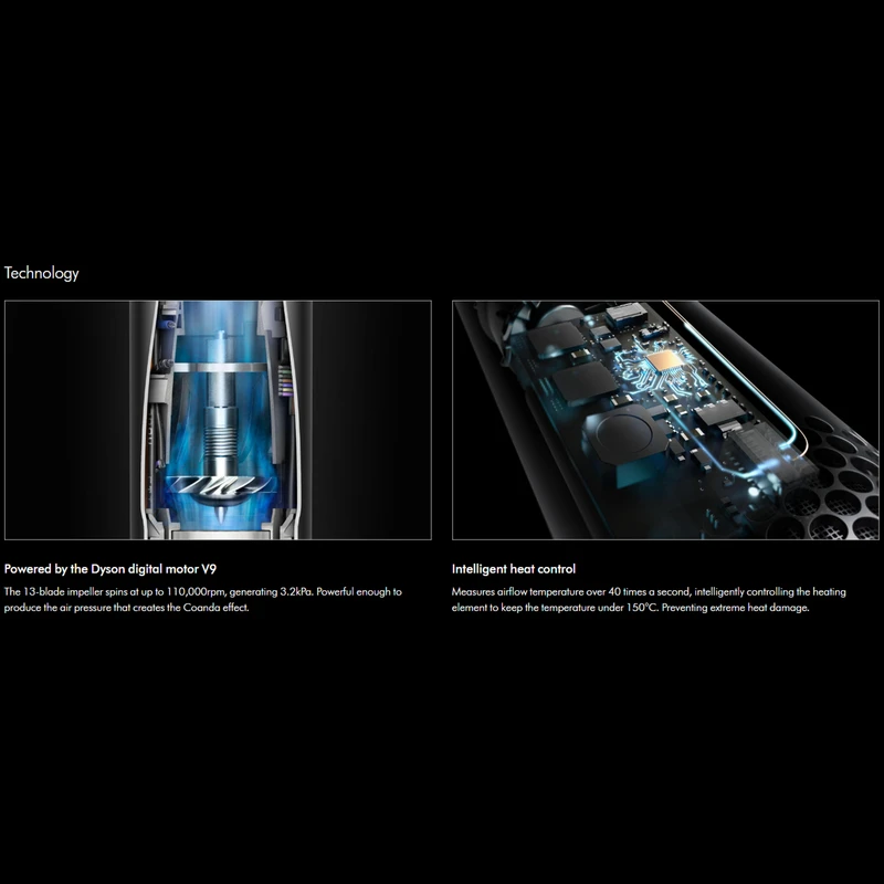 سشوار و فر کننده مو دایسون مدل Airwrap Complete Long Volumise HS05 یکی از قدرتمند ترین سشوار های موجود در دنیا است که طراحی بسیار زیبا و بدنه ای با کیفیت دارد . شرکت دایسون که از پرچمداران و بهترین ها و قدیمی ترین کمپانی های ساخت لوازم برقی انگلستانی است چند سالی است با خاصتر کردن طراحی های خود مجدد به چشم طرفداران این کمپانی آمده است.دایسون با تولید سشوارهای جذاب که علاوه بر کیفیت ، ظاهری شیک و خاص نیز دارند در بین بانوان بسیار مشهور شده است . در طراحی سشوارهای این کمپانی که عمدتا به حفظ سلامت موها بیشتر از کمپانی های دیگر فکر شده است، شرکت به شما وعده داده تا موهایتان با استفاده از این دستگاه ها به هیچ وجه آسیب نبینند و خشک یا شکننده نیز نشود . سشوار و فر کننده دایسون Airwrap Complete Long Volumise HS05 محصولی کامل و فوق العاده است و یکی از کاملترین سشوارهای این کمپانی به حساب میآید . شما با کمک این دستگاه میتوانید استایل موهای خود را تغییر دهید و آن ها را به زیباترین شکل ممکن آرایش کنید . سشوار برس دار دایسون Airwrap HS05 دارای 6 سری متفاوت است که هر کدام به موهای شما حالتی جدید می بخشد . شما با این 6 سری متنوع میتوانید موها را خشک کنید ، فر کنید ، حالت دار کنید و یا به لخت ترین شکل ممکن در بیاورید . نگران نگهداری این سری ها نباشید چرا که این کمپانی به این موضوع نیز فکر کرده است و یک کیس سورمه ای زیبا برای آن ها تعبیه شده که شما میتوانید دستگاه و سری ها را در آن نگه دارید . در کنار تمام این قابلیت ها این دستگاه نیز قابلیت یون سازی دارد و به سلامت بیشتر موهای شما کمک میکند . فناوری هوشمند پروانه 13 پره تا 110000 دور در دقیقه میچرخد و 3.2 کیلو پاسکال فشار تولید میکند و با بهره مندی از موتور قدرتمند V9 میتواند اثر کوآندا را ایجاد کند. اثر کوآندا در سشوار به توانایی هوا برای چسبیدن و تغییر مسیر دادن اطراف مو و کمک به حالتدهی بهتر آن گفته میشود و این فناوری به بهبود کارایی و سهولت حالتدهی کمک میکند. علاوه بر این، کنترل هوشمند حرارتی دمای جریان هوا را بیش از 40 بار در ثانیه اندازه گیری می کند تا دما را در سطح بهینه نگه دارد .