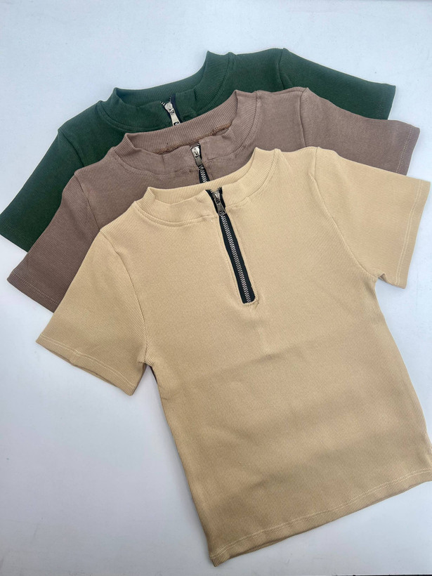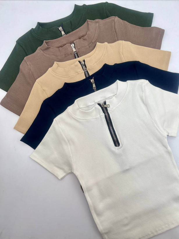 بلوز آستین کوتاه زنانه نیم زیپ کد 1054
