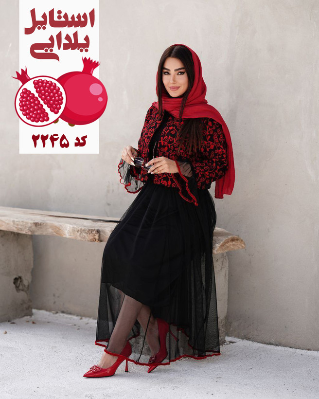 این ست کت و دامن، با رنگهای غالب قرمز آتشین و مشکی کلاسیک، بهترین گزینه برای تجلیل از شب یلدا و ماندگار ساختن عکسهای شب خاطرهانگیز شماست. آن را با کفشهای پاشنه بلند قرمز یا مشکی ست کنید و در این شب به یادماندنی بدرخشید!