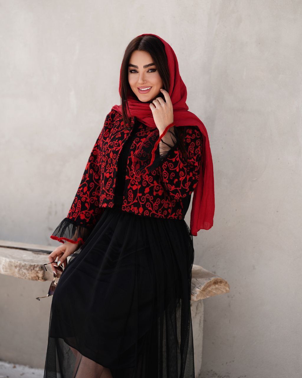این ست کت و دامن، با رنگهای غالب قرمز آتشین و مشکی کلاسیک، بهترین گزینه برای تجلیل از شب یلدا و ماندگار ساختن عکسهای شب خاطرهانگیز شماست. آن را با کفشهای پاشنه بلند قرمز یا مشکی ست کنید و در این شب به یادماندنی بدرخشید!