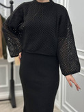 بلوز بافت زنانه قلابی توری | آستین آزاد کد 2264