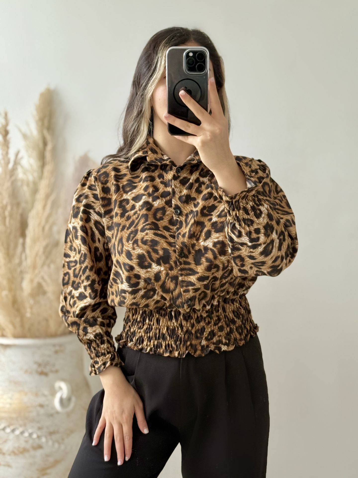 شومیز کراپ پلنگی زنانه مدل الیزه کد 3028 از محصولات زیبای برند پوشاک بهاره است که با دوخت عالی و پارچه باکیفیت تولید شده. این محصول با طراحی مدرن و شیک، انتخابی ایدهآل برای خانمهای خوشسلیقه است.