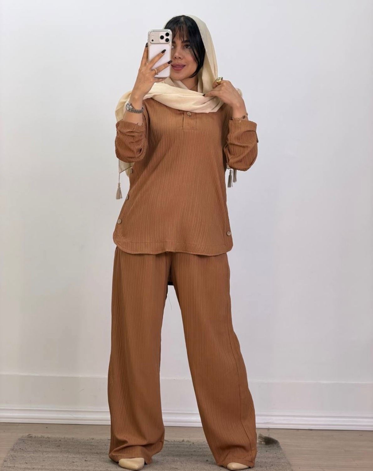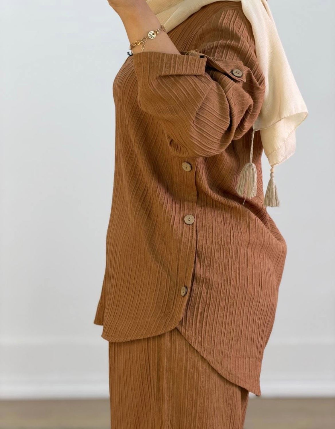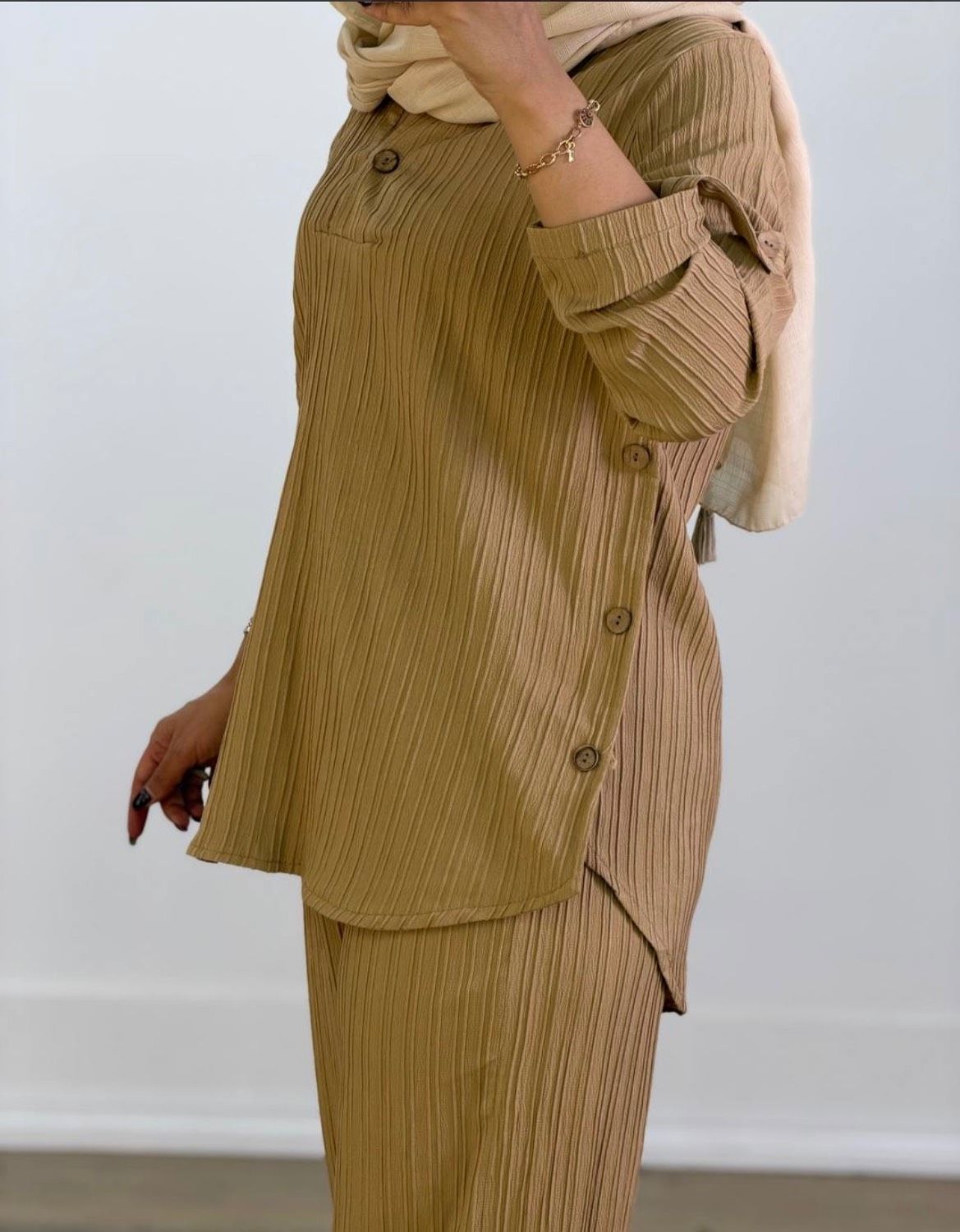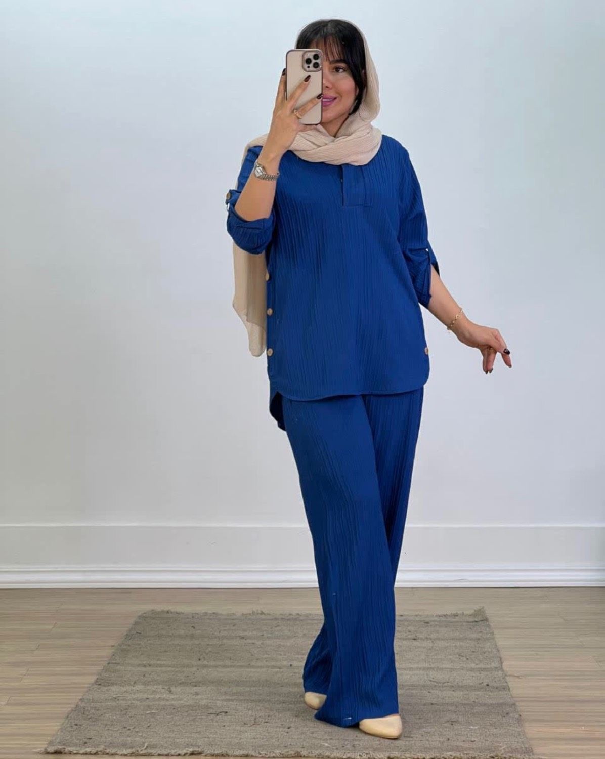ست دیانا با پارچه ایوا درجه یک و طراحی دکمهدار، استایلی شیک و راحت ایجاد میکند. رنگبندی متنوع این ست به شما امکان میدهد رنگ مورد علاقهتان را انتخاب کنید.