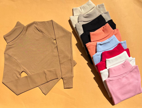 بلوز بافت بیسیک رنگی گرم بالا زنانه کد 2255