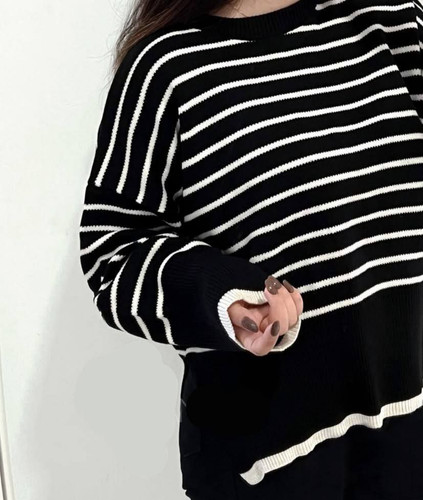 تاپ کبریتی یقه اسکی زنانه راه راه کد 1069